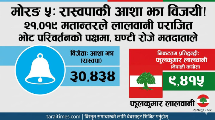 मोरङ ५ मा रास्वपाकी आशा झा विजयी: २१ हजार बढी....