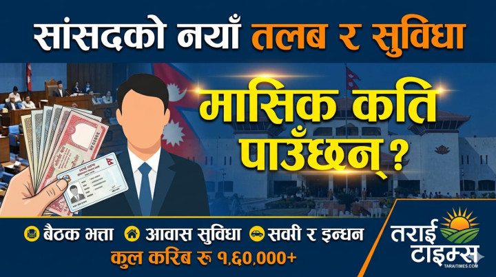 २०८२ फागुन २१ को निर्वाचनबाट चुनिएका प्रतिनिधि सभाका नयाँ सांसदहरूले राज्यकोषबाट पाउने पारिश्रमिक र सेवा-सुविधाको विवरण सार्वजनिक भएको छ। विराटनगर लगायत तराई क्षेत्रबाट काठमाडौँ प्रतिनिधित्व गर्ने सांसदहरूले मासिक तलबका साथै बैठक र यात्राको दूरीका आधारमा आकर्षक भत्ता प्राप्त गर्नेछन्।